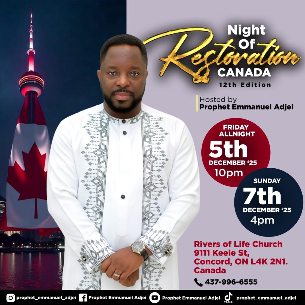 Join PROPHET DR. EMMANUEL ADJEI weekdays at 11 PM GMT and your life will never be the same.